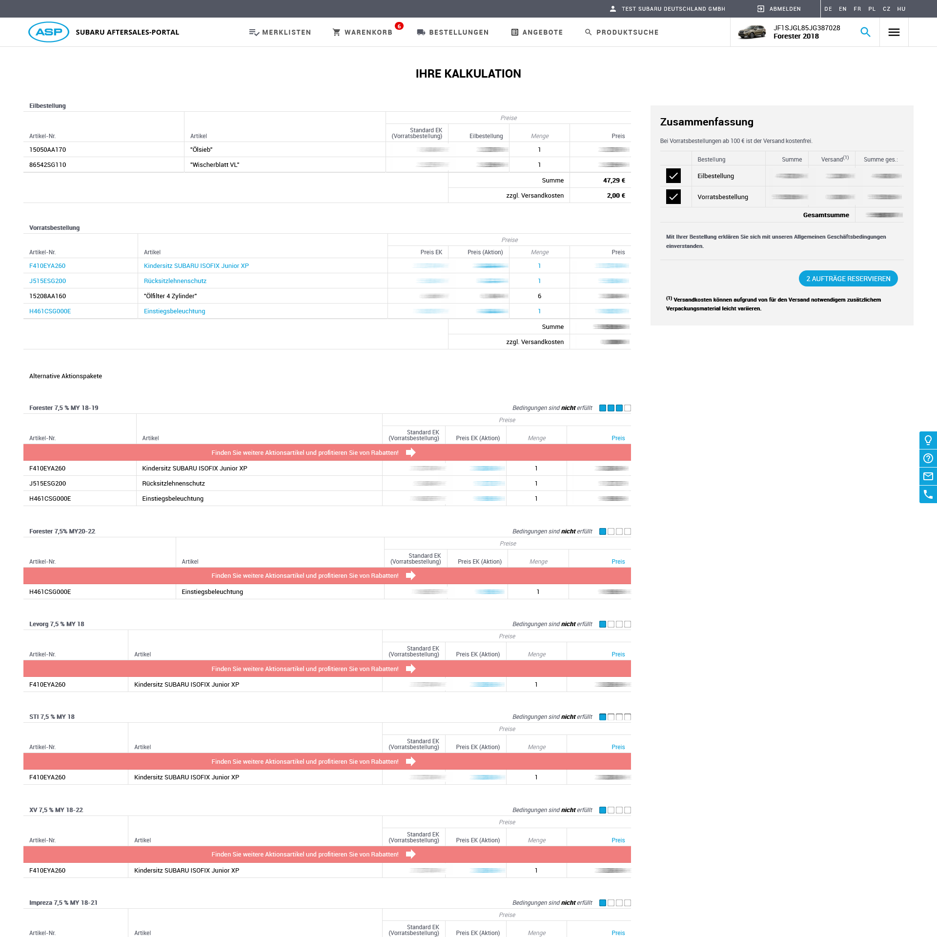 Wer soll bei den vielen Rabattaktionen mit unterschiedlichen Bedingungen und Mengenstaffeln den Überblick behalten? Subaru Händler können sich nun ganz entspannt zurücklehnen. Das ASP kennt sämtliche Konditionen und garantiert mit einem intelligenten Algorithmus immer den besten Preis für den jeweiligen Warenkorb.
