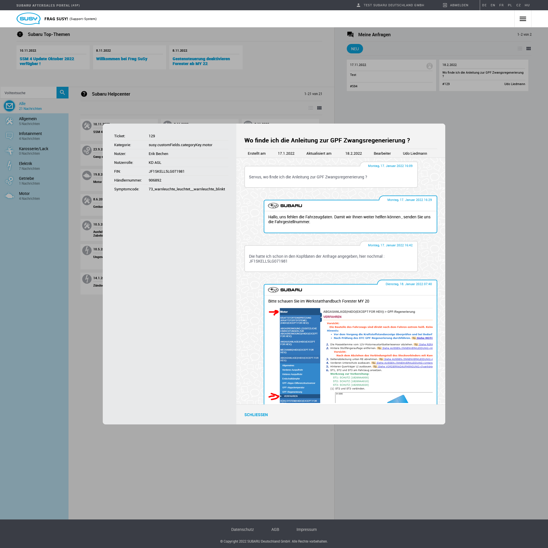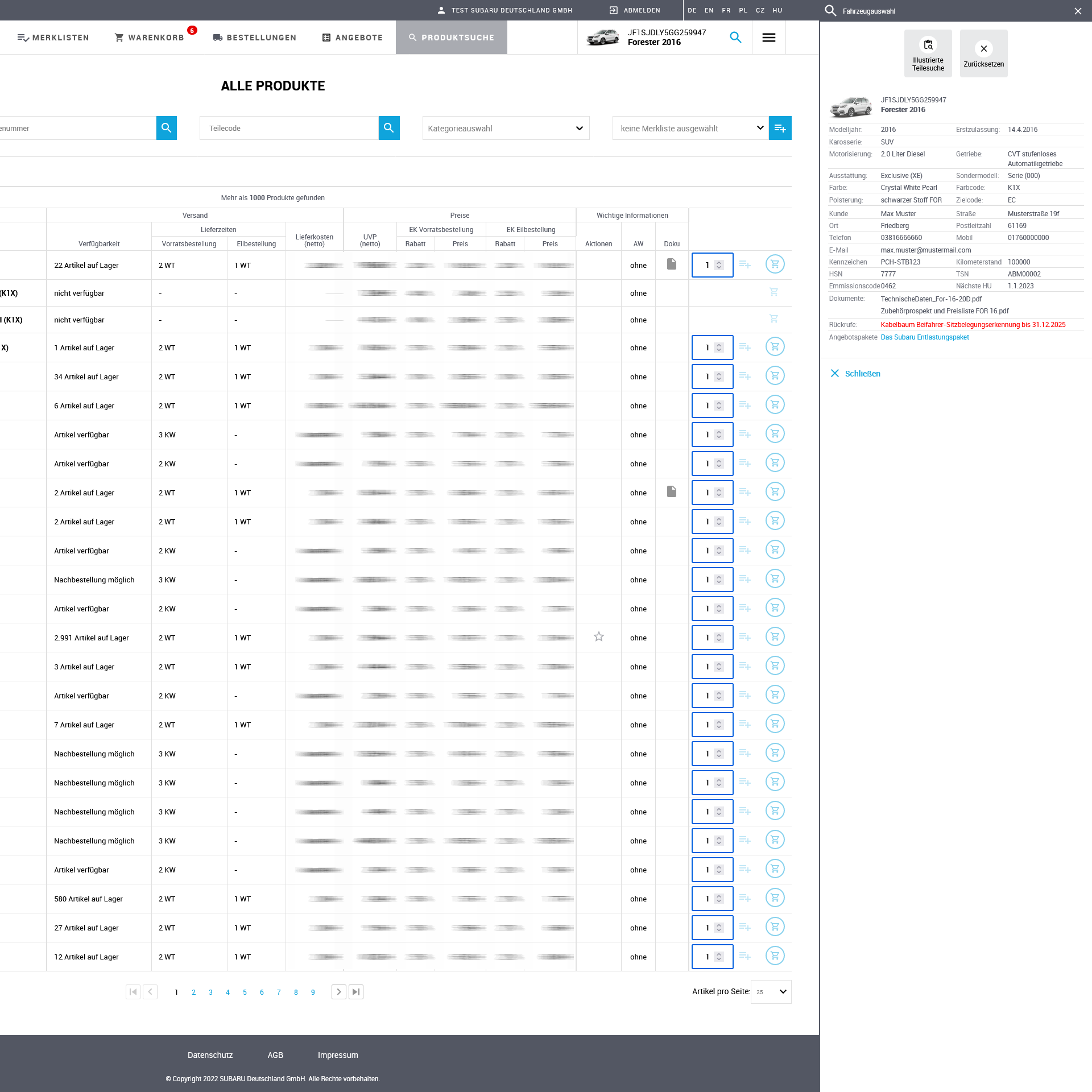 Digitalisierung von Aftersales Geschäftsabläufen in einer zentralen Plattform für die Subaru Händler, u.a. mit: