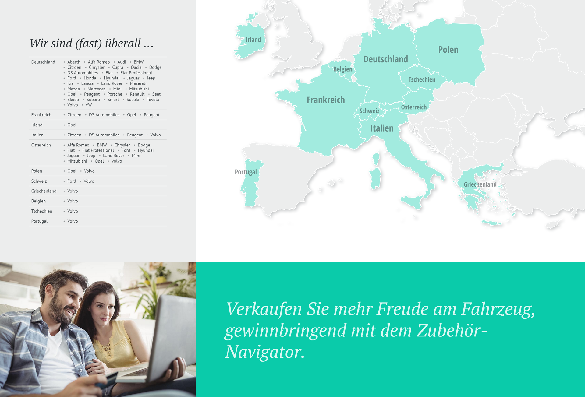 Der Zubehör-Navigator geht in immer mehr internationalen Märkten online. Unterstützt werden wir dabei von unseren globalen Agentur-Partnern und verschiedenen Herstellern. Durch die vielen Projekte kann der Zubehör-Navigator bereits in über 10 Ländern für insgesamt mehr als 35 Hersteller eingesetzt werden.